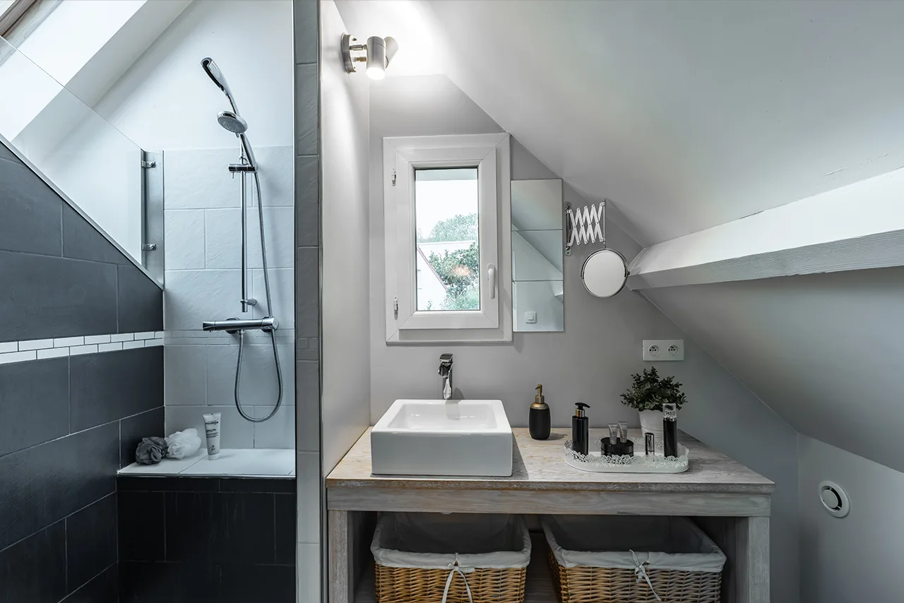 Le home staging a consisté à mettre en valeur cette maison ancienne composée de petites pièces. Dans le salon/salle à manger, deux espaces ont bien été délimités pour profiter de la lumière traversante grâce à la double exposition. La cuisine a été accessoirisée pour en faire un petit coin bar, convivial. A l’étage, la salle de bain et les chambres ont été pensés pour une famille avec deux adolescents. La suite parentale, au dernier étage, a été décorée dans un esprit cocooning, plein de charme, adapté aux couleurs de l’automne. Le sous-sol a été entièrement nettoyé, il est désormais dédié à une buanderie et à un espace bureau, souvent recherché pour le télétravail.