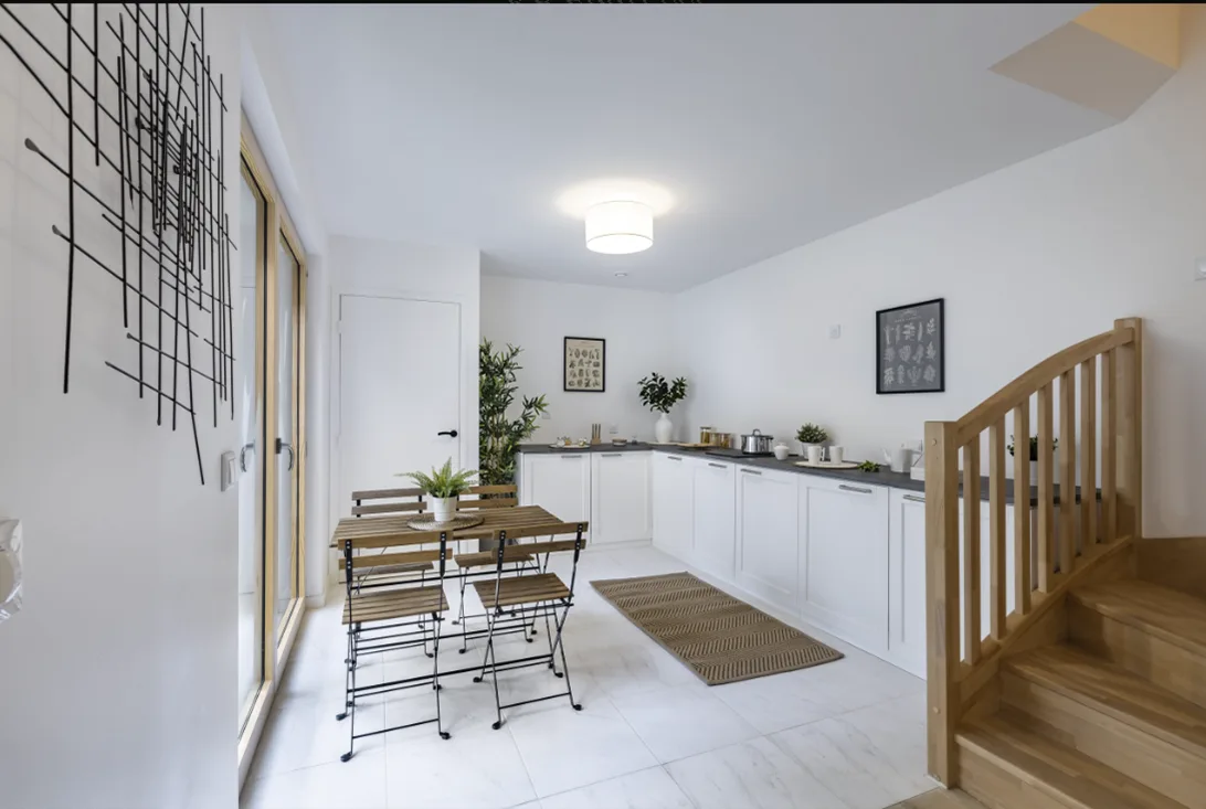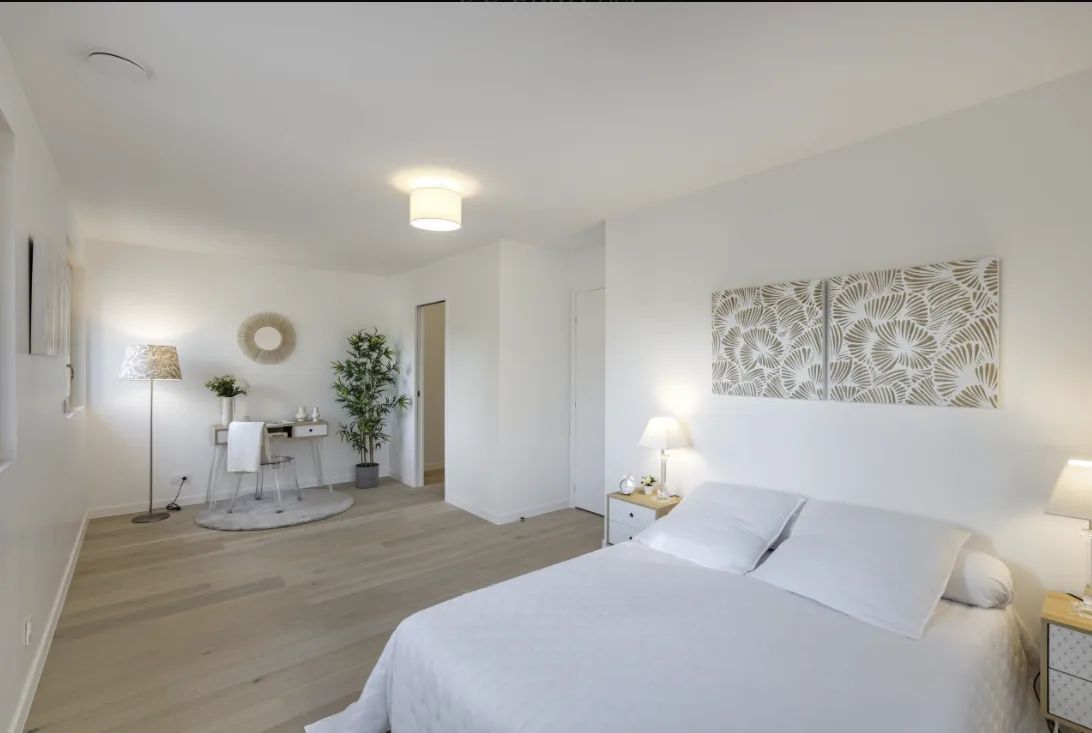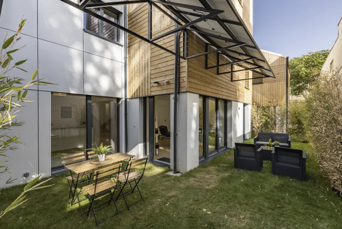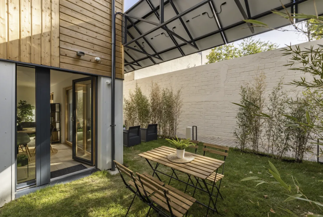 Une cuisine a été installée pour que les futurs acquéreurs puissent se projeter aisément. Enfin, le mobilier, la décoration des chambres et des salles de bain ainsi que le mobilier extérieur ont complété ce projet innovant.